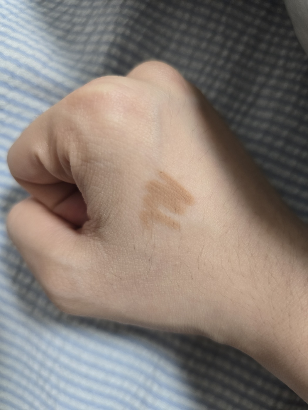 눈이 아주 자연스럽게 커져 보이는 효과를 줍니다. 색상도 매우 자연스럽고 꾸안꾸의 정석 같은 느낌이에요. 처음 발라보고 우와 했답니다. 실제 사용했을 때 대비를 보여주고 싶었는데 생각보다 잘 안 잡혀서 손등발색으로 보여드릴게요.