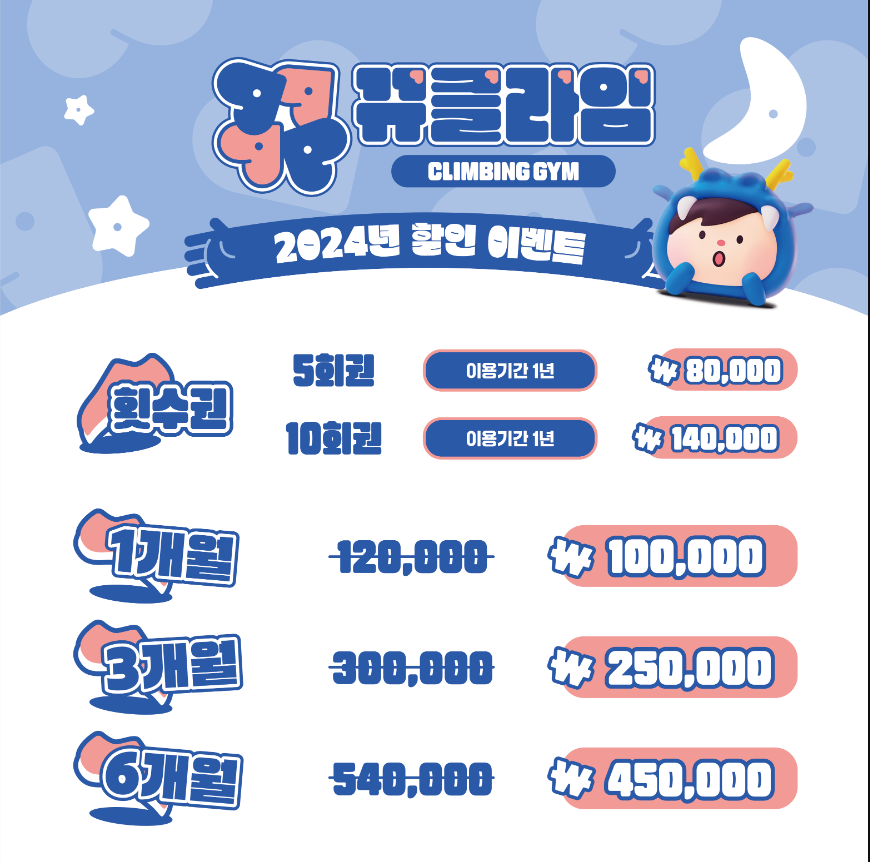 50분 강습 + 장비 대여(암벽화 및 초크) + 일일 자유이용권(무제한) 코스였습니다.