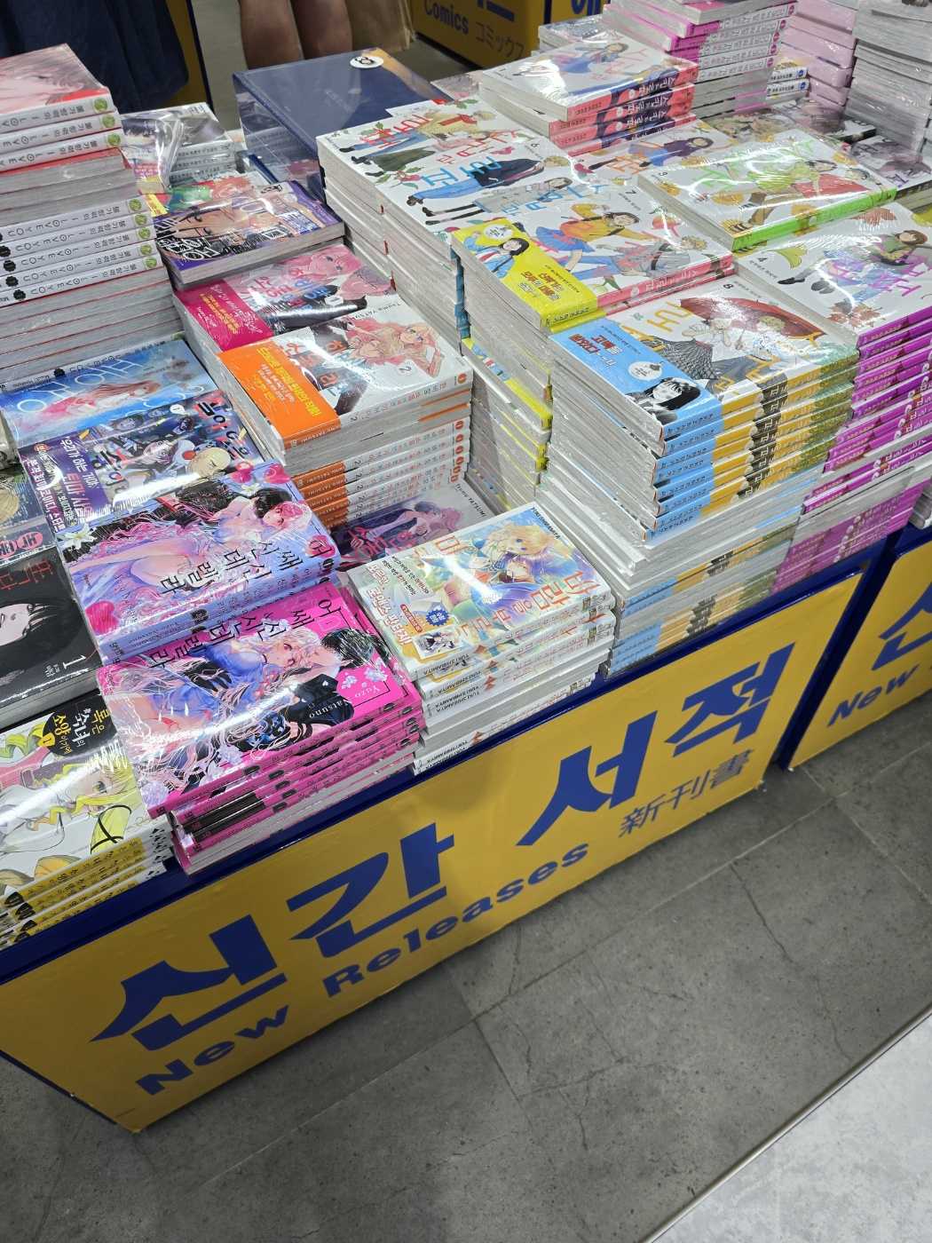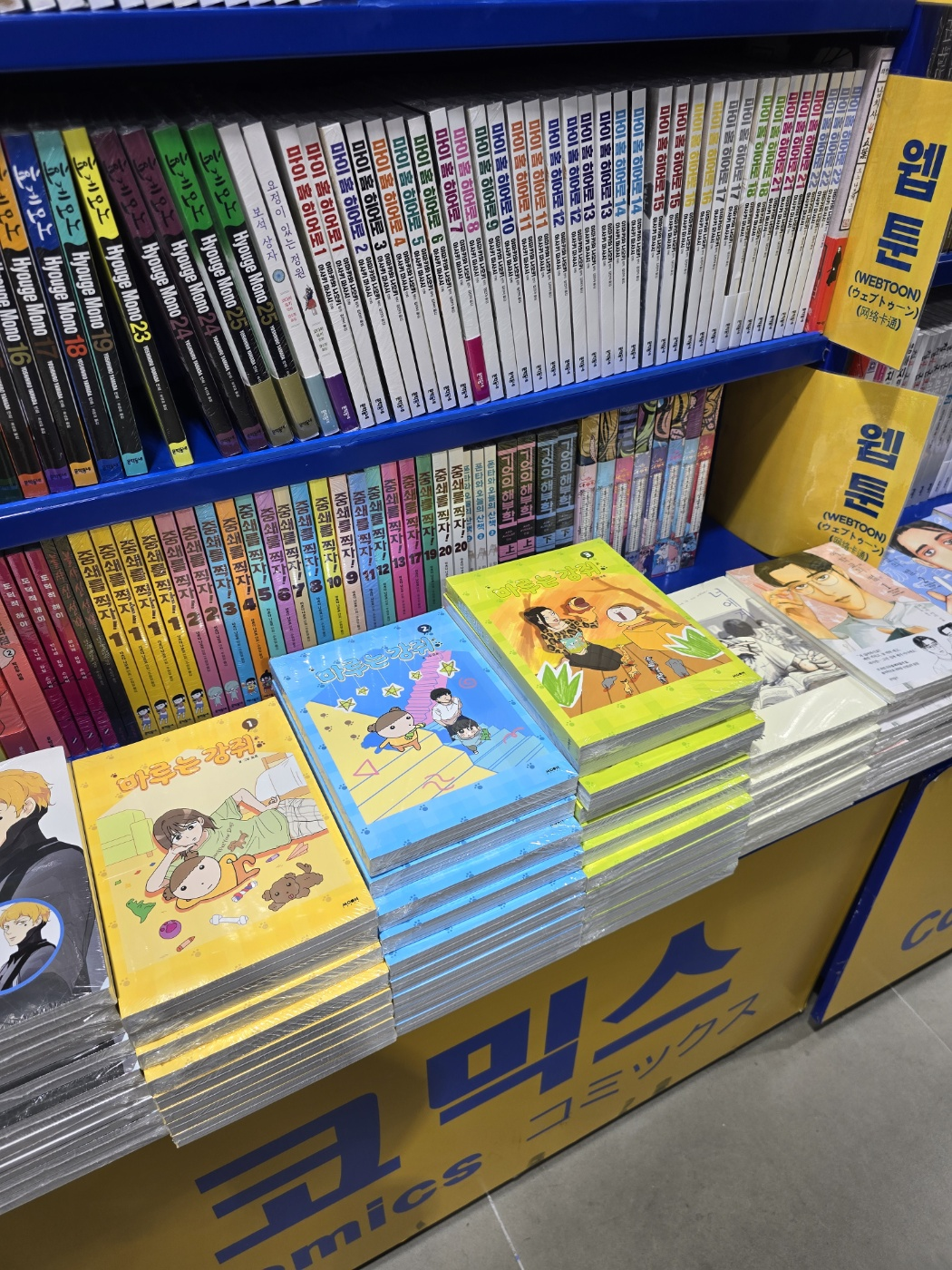 만화책, 라노벨, 드로잉 책 등등 애니에 관련된 책들도 다양했어서 보는 재미가 있었습니다. 보다가 잘 모르겠어서 저는 웹툰 칸을 구경했던 것 같습니다.