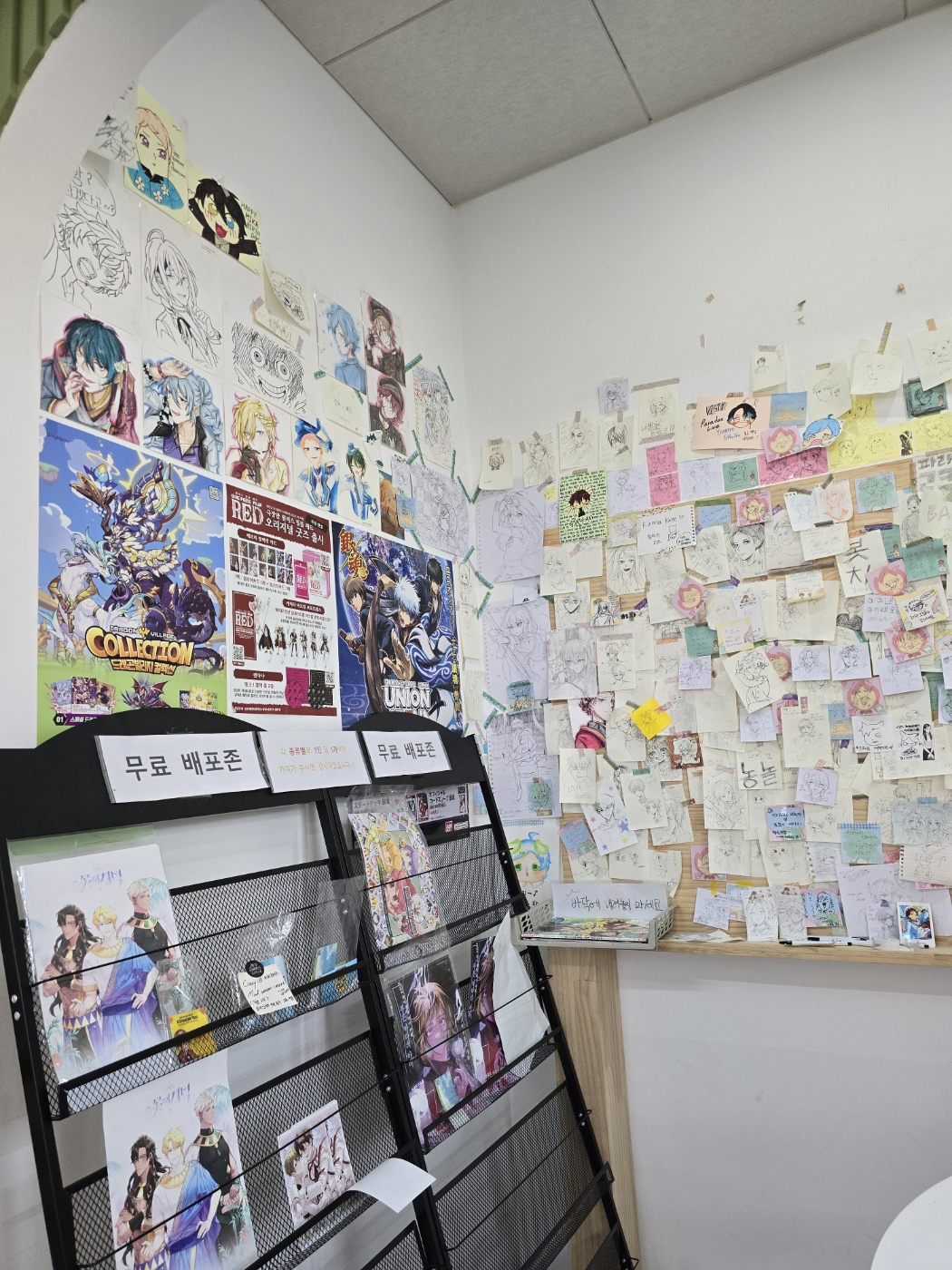 만화책, 라노벨, 드로잉 책 등등 애니에 관련된 책들도 다양했어서 보는 재미가 있었습니다. 보다가 잘 모르겠어서 저는 웹툰 칸을 구경했던 것 같습니다.